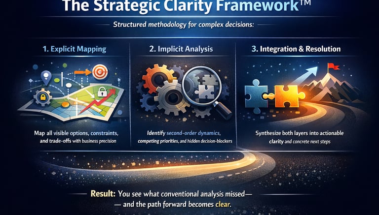 Strategic Clarity Consulting exists because the most important decisions require more than analysis of explicit factors. They require structured examination of the implicit layer - where decisions actually get blocked.