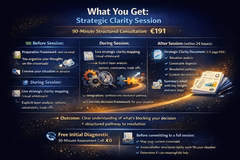 If you're a capable professional experiencing decision paralysis on a strategic crossroads—if analysis hasn't resolved it and you suspect implicit constraints are creating the block—let's assess whether structured clarity work would serve you.